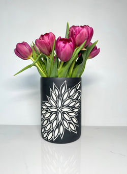 ![]() studded lines vase 6.75" t x 4.5" w qty x 3 | ![]() black full leaf burst vase 6.75" t x 4.5" w | ![]() black partial dahlia vase 6.75" t x 4.5" w qty x 2 |